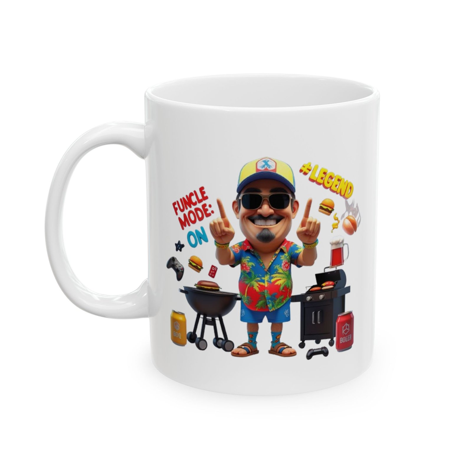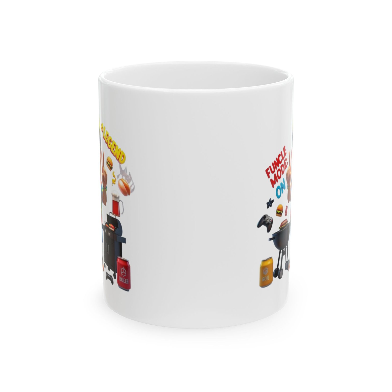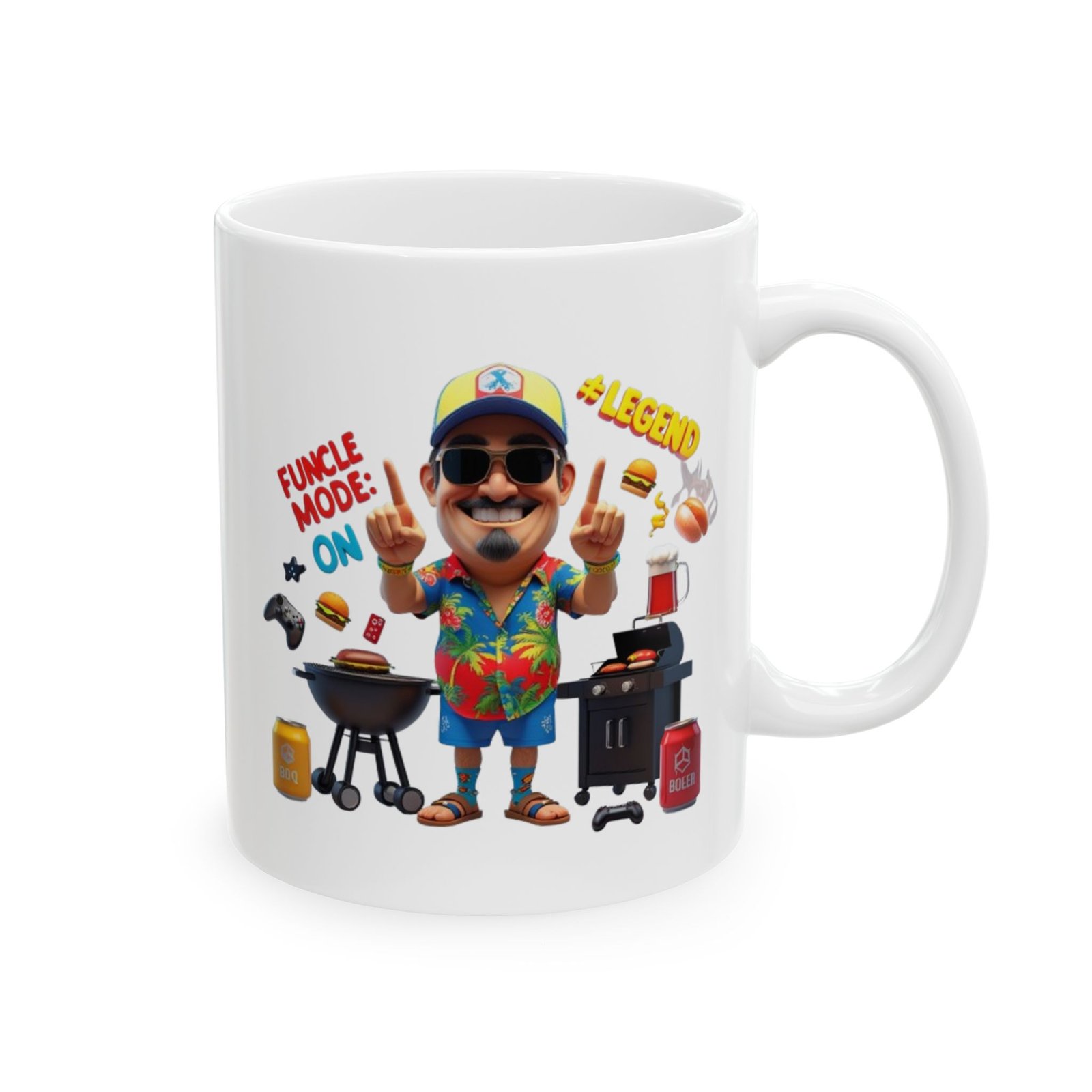 Turn up the fun with our hilarious “Funcle Mode: ON” mug — the perfect tribute to every uncle who’s part fun, part cool, and a little bit chaotic! Set against a clean white background, this bold and colorful design features a cartoon uncle with shades on, a backwards cap, and a confident smirk. He’s holding a gaming controller in one hand and a soda or coffee in the other, fully in “funcle” mode.