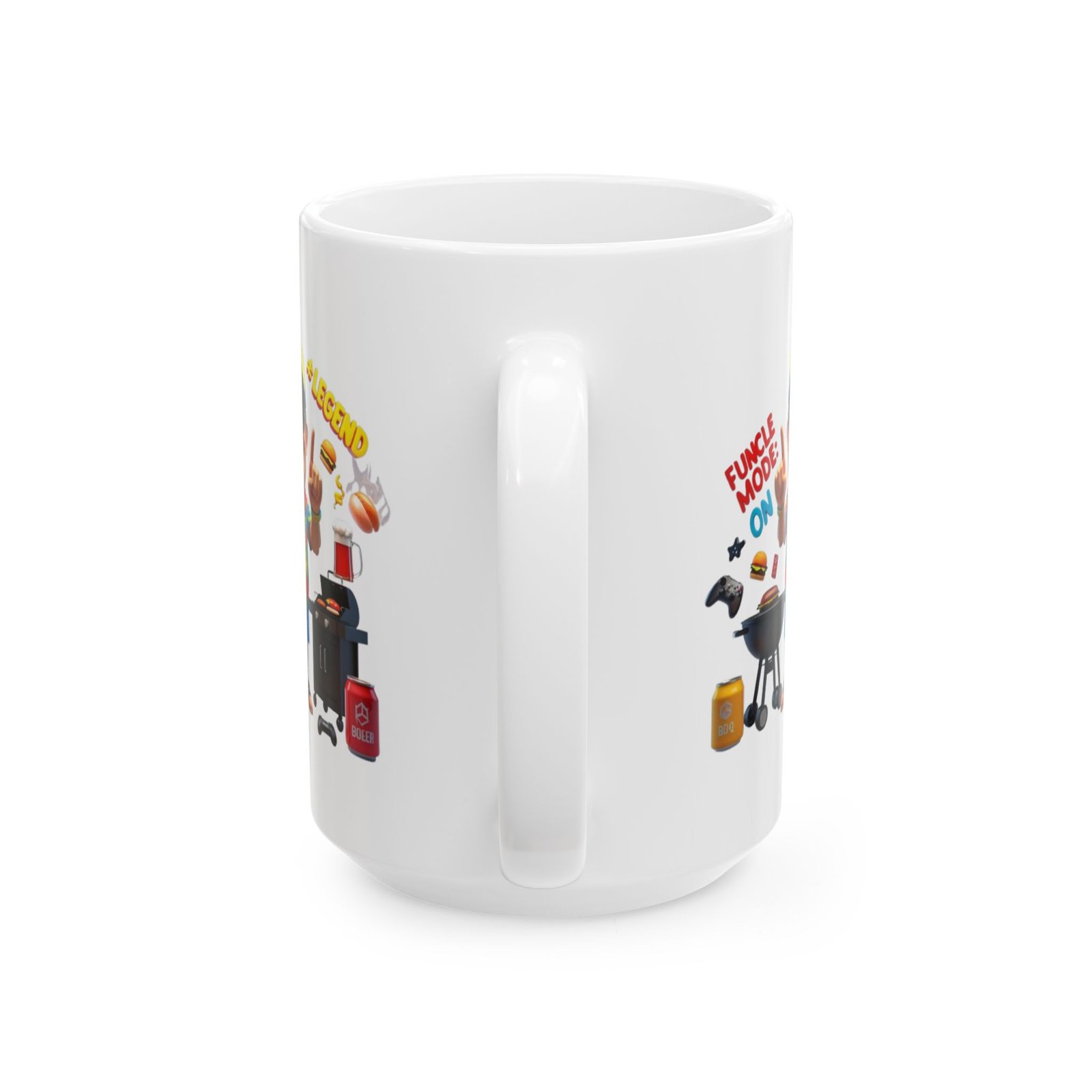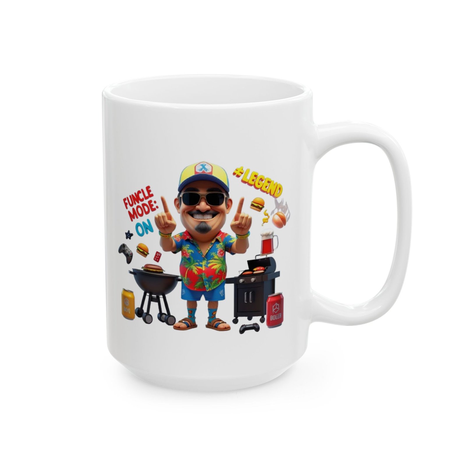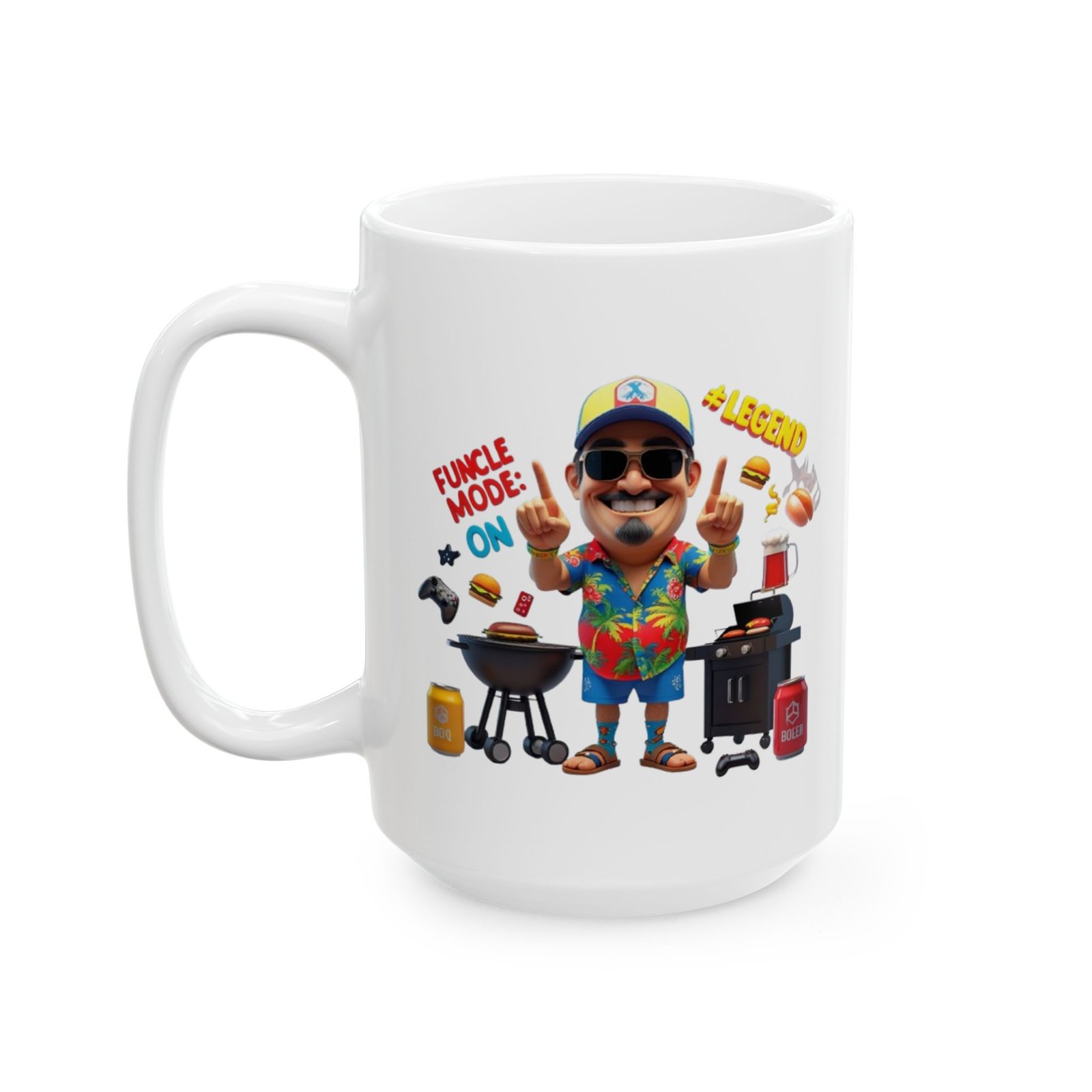 Turn up the fun with our hilarious “Funcle Mode: ON” mug — the perfect tribute to every uncle who’s part fun, part cool, and a little bit chaotic! Set against a clean white background, this bold and colorful design features a cartoon uncle with shades on, a backwards cap, and a confident smirk. He’s holding a gaming controller in one hand and a soda or coffee in the other, fully in “funcle” mode.