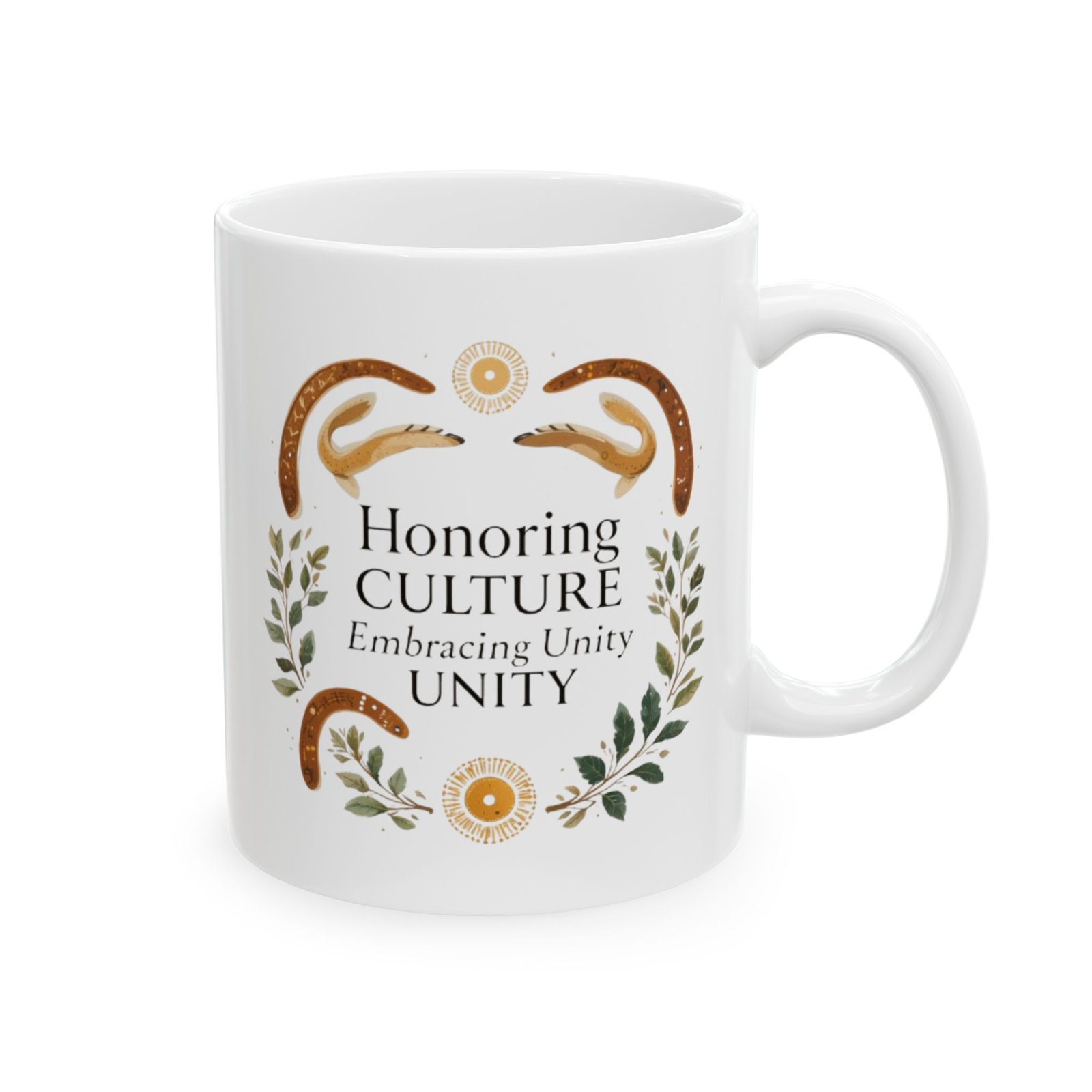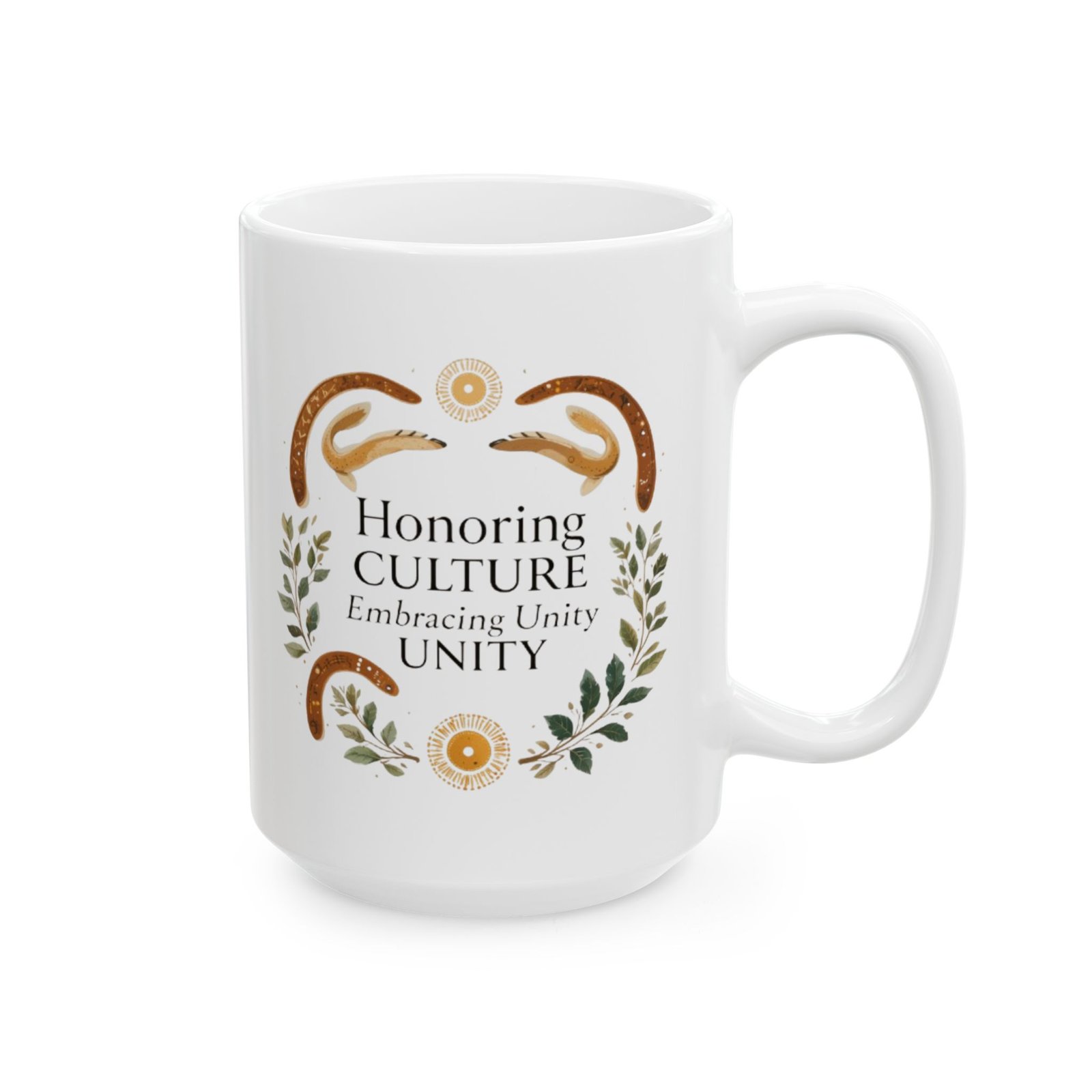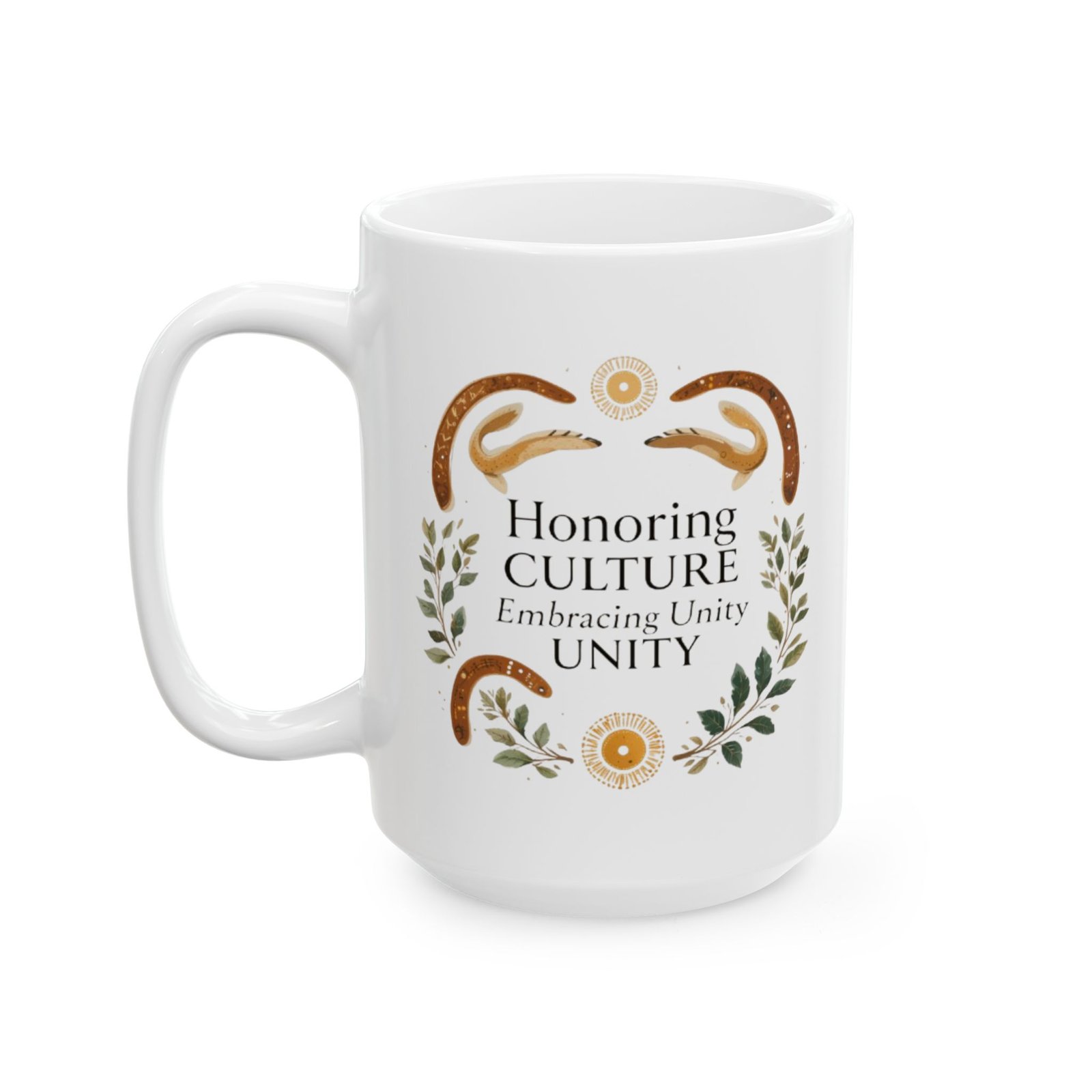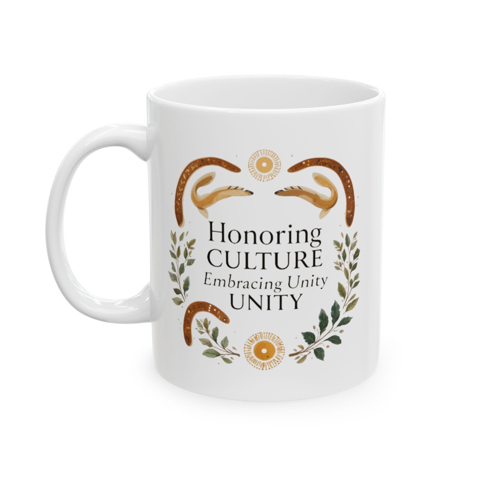 Celebrate the strength of diversity and the beauty of connection with our “Honoring Culture, Embracing Unity” mug. Featuring a thoughtful design inspired by Indigenous symbolism and earthy tones, this piece reflects respect, reconciliation, and shared humanity.