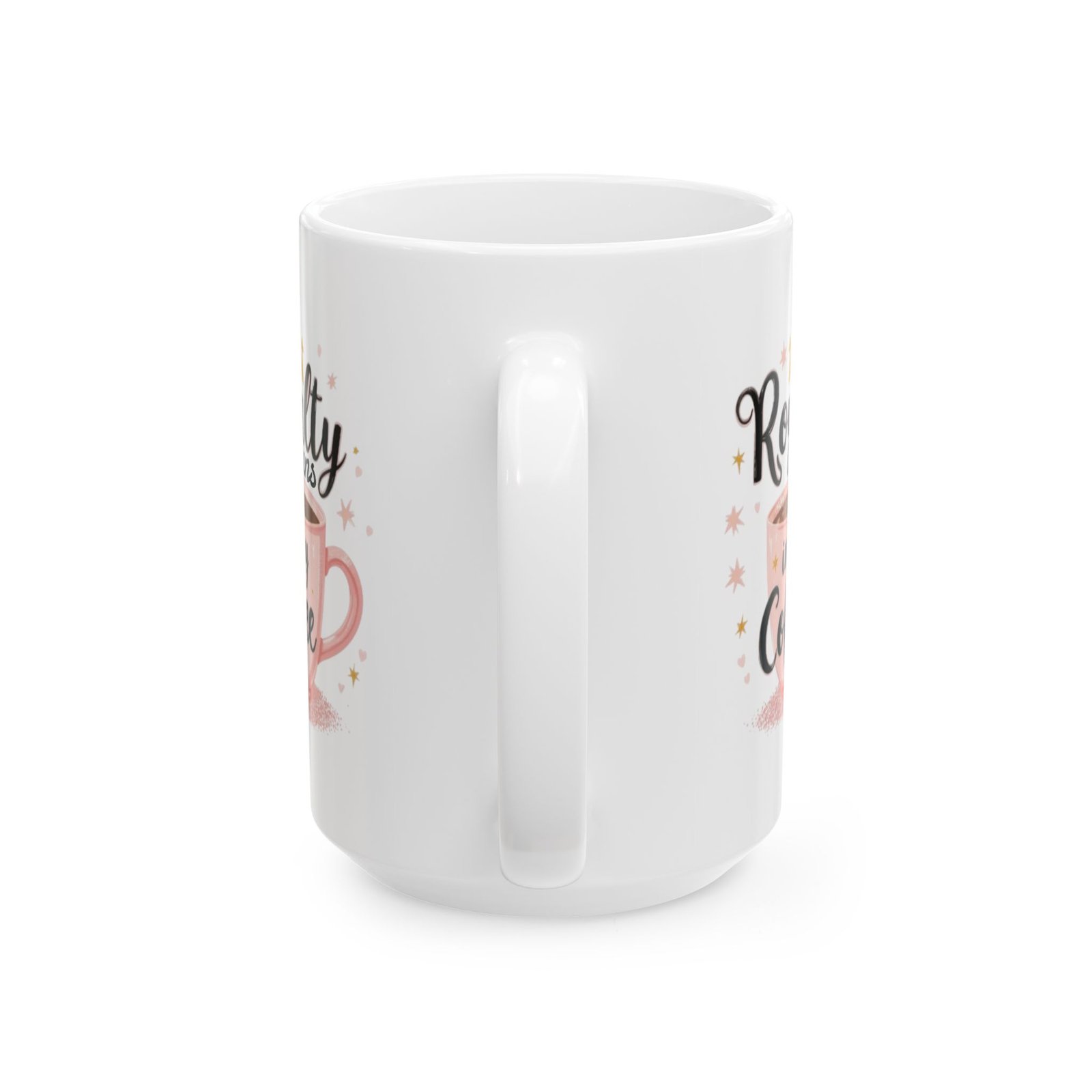 Featuring a chic mix of cursive and serif fonts, a golden crown, and soft sparkles around a steaming cup, this design brings luxury to your daily brew. Whether you’re sipping at your desk or gifting it to your favorite queen (or king) of coffee, this mug is pure royal energy in every sip.